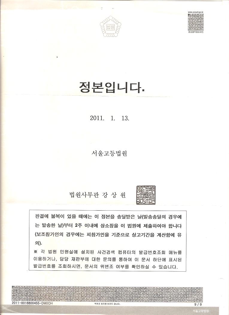 2010. 11. 30 판결 선고 기일(25일 변론재개 결정으로 연기)