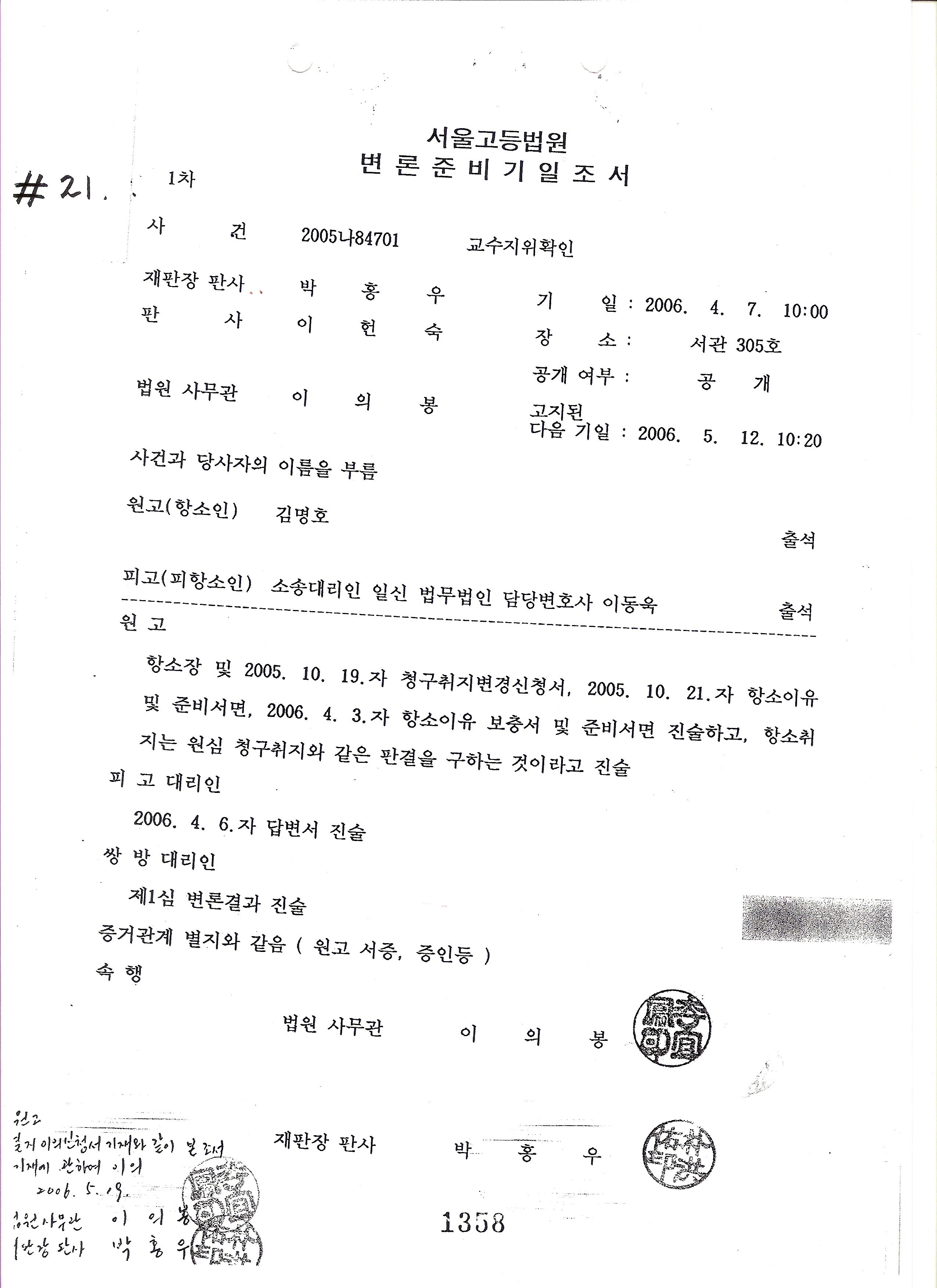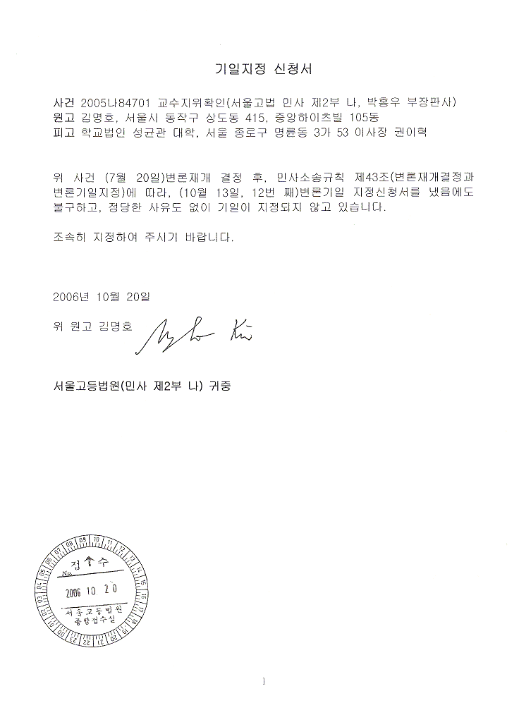 [서울 고등 법원 민사 14부 2005년 10월 18일 접수 후